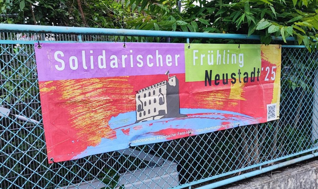 (2.6.2025) Am 27.5.2025 fand im großen Saal des Hambacher Schlosses eine Sitzung des Neustadter Stadtrats statt. Anlass war der 193. Jahrestag des Hambacher Festes von 1832. Der viel beklatschte Höhepunkt war der Vortrag von Kristian Buchna von der Stiftung Hambacher Schloss zu den engen personellen und inhaltlichen Verbindungen zwischen der Reichsbürgerbewegung, die das Kaiserreich von 1871 zurücksehnt, und der Neustadter Gruppe Freieinig. Freieinig, das sich gern ein Freiheits- und Demokratiemäntelchen umhängt, und auch in diesem Jahr wieder an Pfingsten ihre Freunde im antidemokratischen Geiste bundesweit nach Neustadt ruft, wurde von Buchna im Detail als Anhänger der Reichsbürgerbewegung, als Antidemokraten und Antisemiten entlarvt. Mehr dazu im Blogbeitrag von Ulrich Riehm.