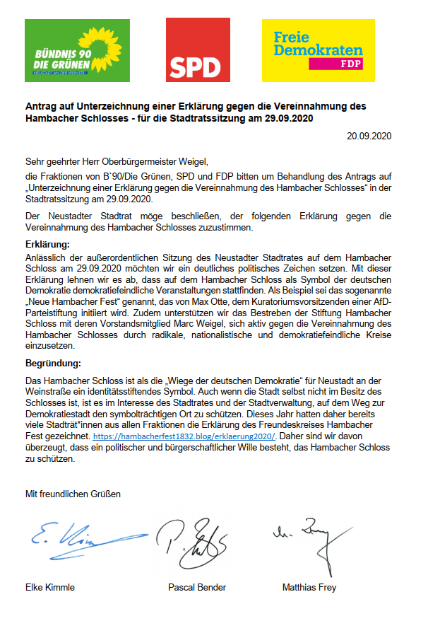 Die Abendveranstaltung der Stiftung Hambacher Schloss kann auf dem YouTube-Kanal der Stiftung nachvollzogen werden: https://www.youtube.com/watch?v=EGJWP27CfY8