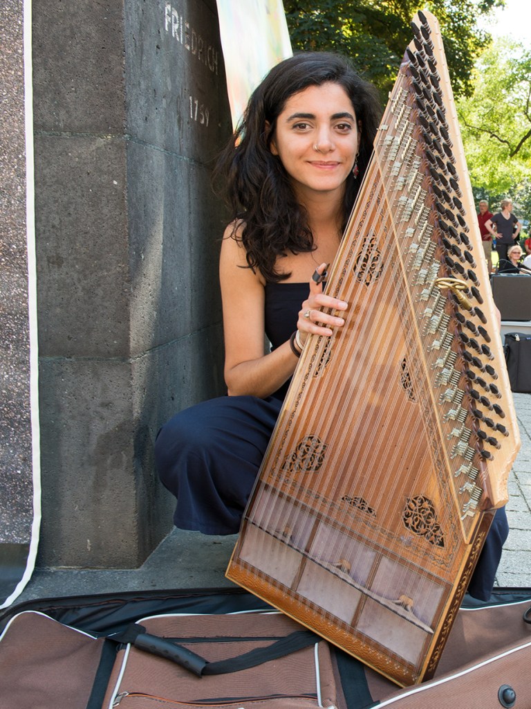 Die aus Tartus stammende und in Mannheim studierende Musikerin Laila Mahmoud sang und spielte auf dem Kanun, eine Art orientalische Zither, eigene Kompositionen. Laila Mahmoud ist übrigens auch Teil des Ensembles Colourage, das in Speyer am 1. Juli eine viel beachtet Premiere feierte (auch Bestandteil des Programms von #2021HAMBACH1832).