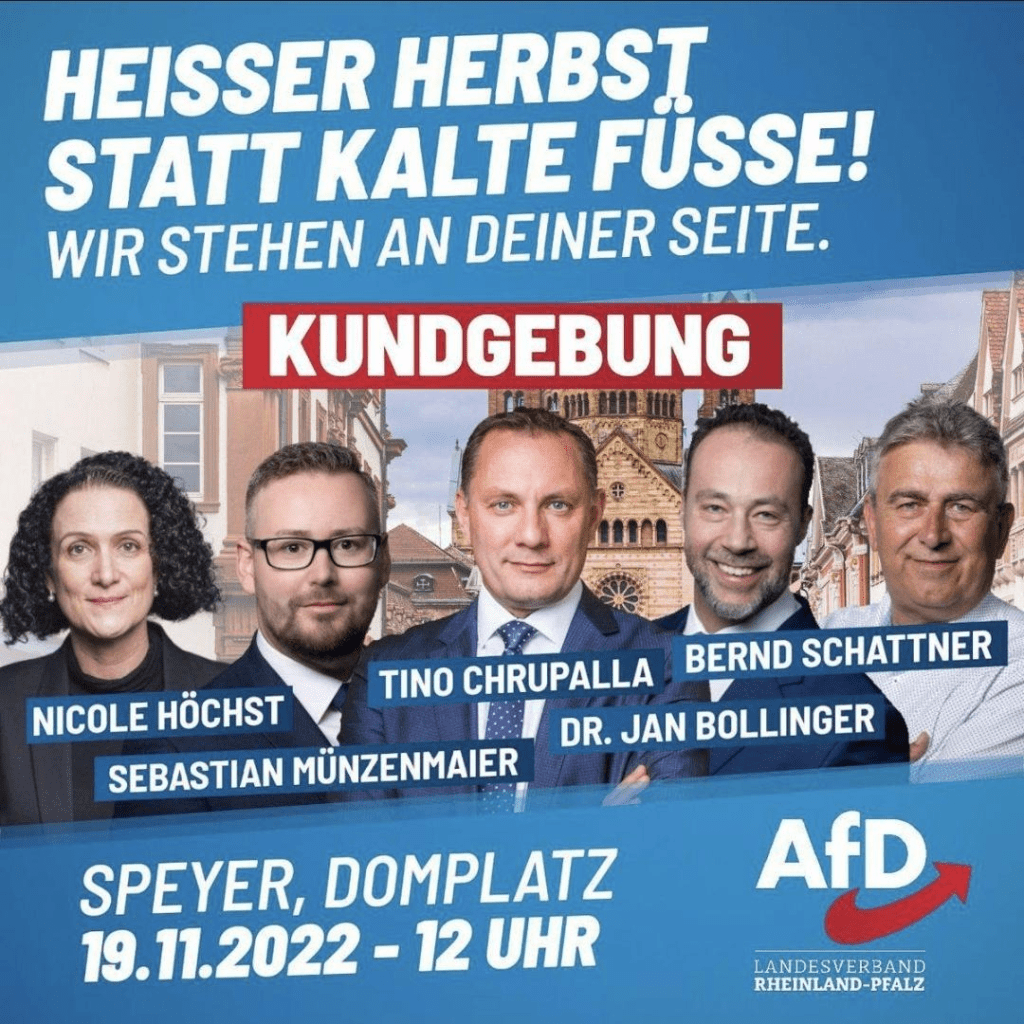 Bei einer Kundgebung auf dem Domplatz am 19. November will die AfD ihre antidemokratische, populistische Agenda in Speyer vorantreiben.