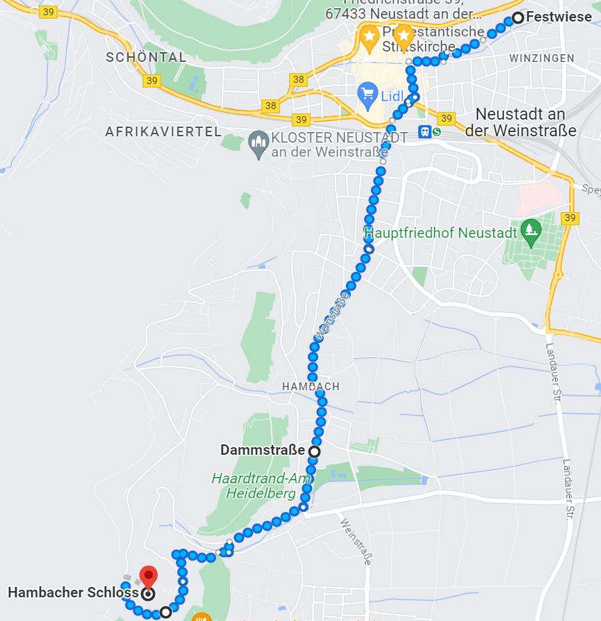 Herr K. hatte im Dezember 2022 eine Versammlung für den 28.5.2023 vom Marktplatz in Neustadt auf das Hambacher Schloss für 10.000 Personen bei der Ordnungsbehörde in Neustadt angemeldet.