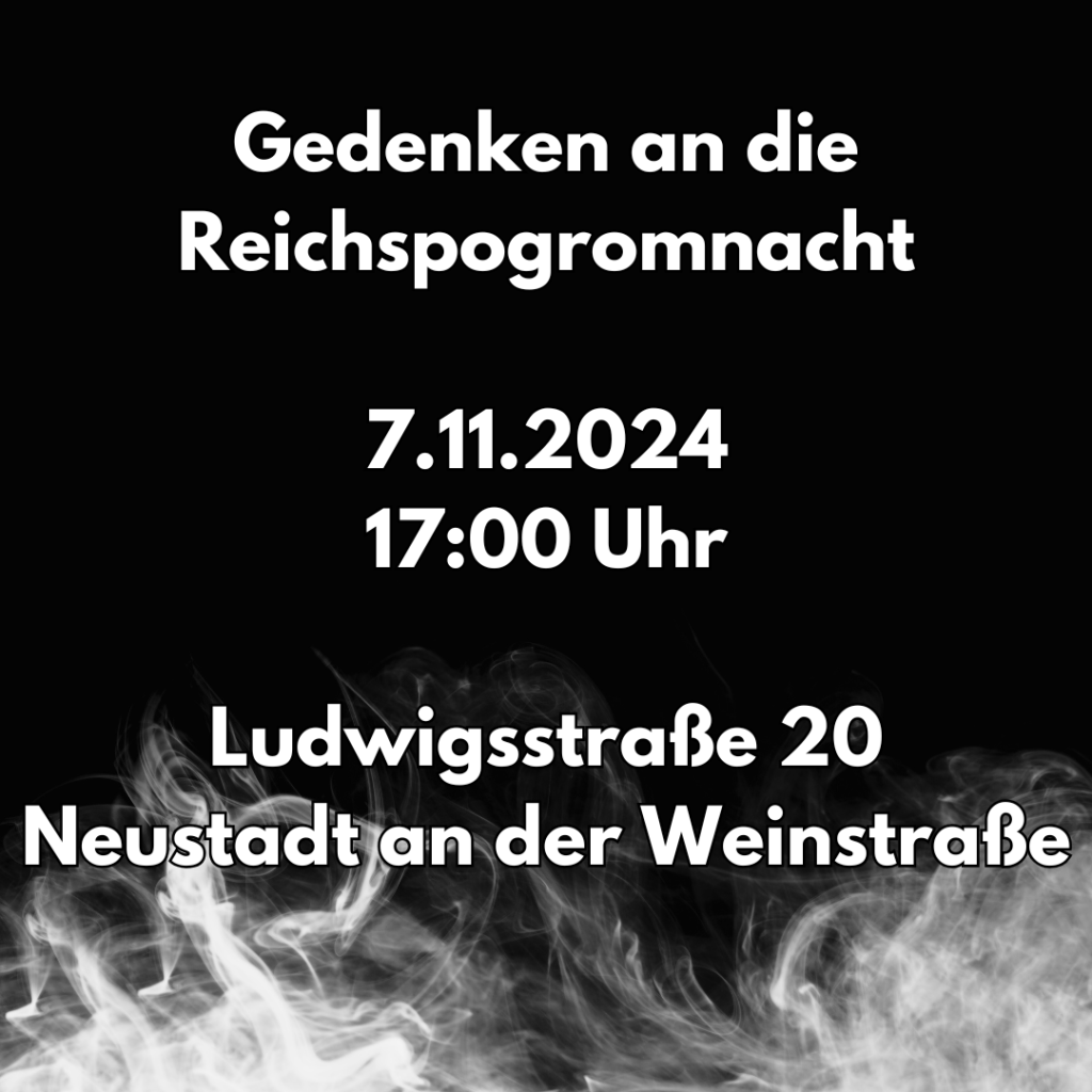 Bereits am Donnerstag, 7.11.2024 um 17:00 Uhr wird die Gedenkstätte für NS-Opfer in Neustadt in Kooperation mit der Demokratiestadt Neustadt an der Weinstraße den Opfern der Reichspogromnacht am 9.11.1938 am Gedenkstein am Standort der ehemaligen Synagoge Neustadts in der Ludwigstraße 20 gedenken.