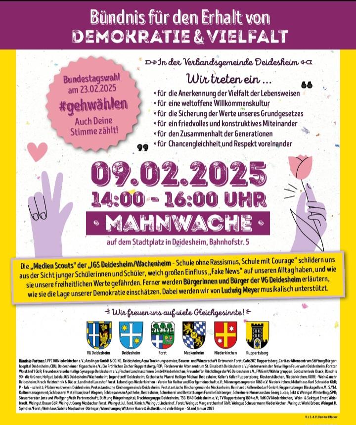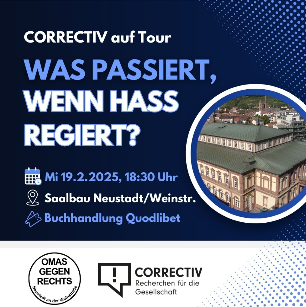 Als das Regionale Bündnis gegen Rechts Neustadt im Dezember letzten Jahres den Plan für eine Kundgebung und Demonstration unter dem Motto „Uffbasse – Nie wieder Faschismus“ fasste, war nicht absehbar, welche Brisanz dieser Aufruf finden würde. Seit Mittwoch letzter Woche gehen in Deutschland in Stadt und Land Hunderttausende auf die Straße, um gegen die Kumpanei der Merz-CDU, der Linder-FDP und des Wagenknecht-BSW mit der Weidel-AfD zu protestieren. Politischer Anstand gebietet größtmöglichen Abstand zu dieser in Teilen rechtsextremistischen Partei.
